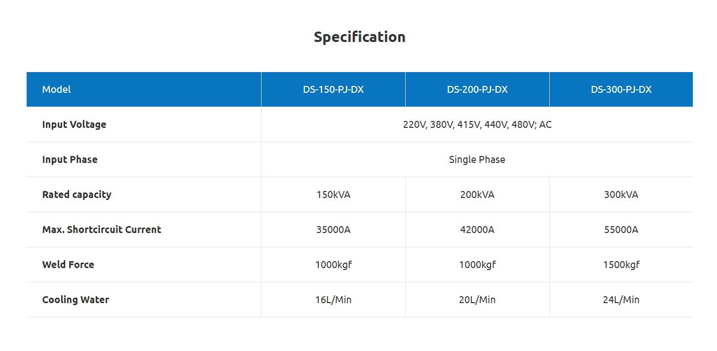 - Weld Data acquisition including weld force, weld pressure, weld penetration, weld current, weld time to water flow and water temperature